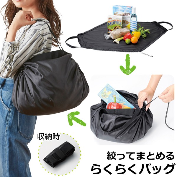 絞ってまとめる らくらくバッグ 肩掛け エコバッグ レジカゴ対応 ついで買い特集【 簡単 カゴ お買い物バッグ 風呂式タイプ 小さめ 時短グッズ 旅行 アウトドア 便利グッズ 軽量 コンパクト収納 】◎ ◇ 絞ってバッグ