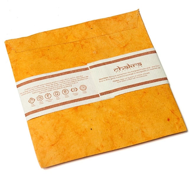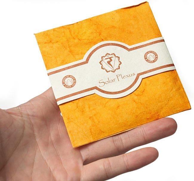 第3チャクラ(ソーラープレクサスチャクラ) - Chakra Collection【サシェ】の詳細 【重さ】約15g 【サイズ】:10cm x 10cm 【素材】紙、お香原料【ご使用方法】ビニールのパッケージを剥がして衣類の上に優しく置いてご使用下さい。