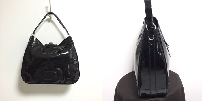 パテントレザーを使った光沢あるボディが高貴でお洒落なショルダーバッグ♪
